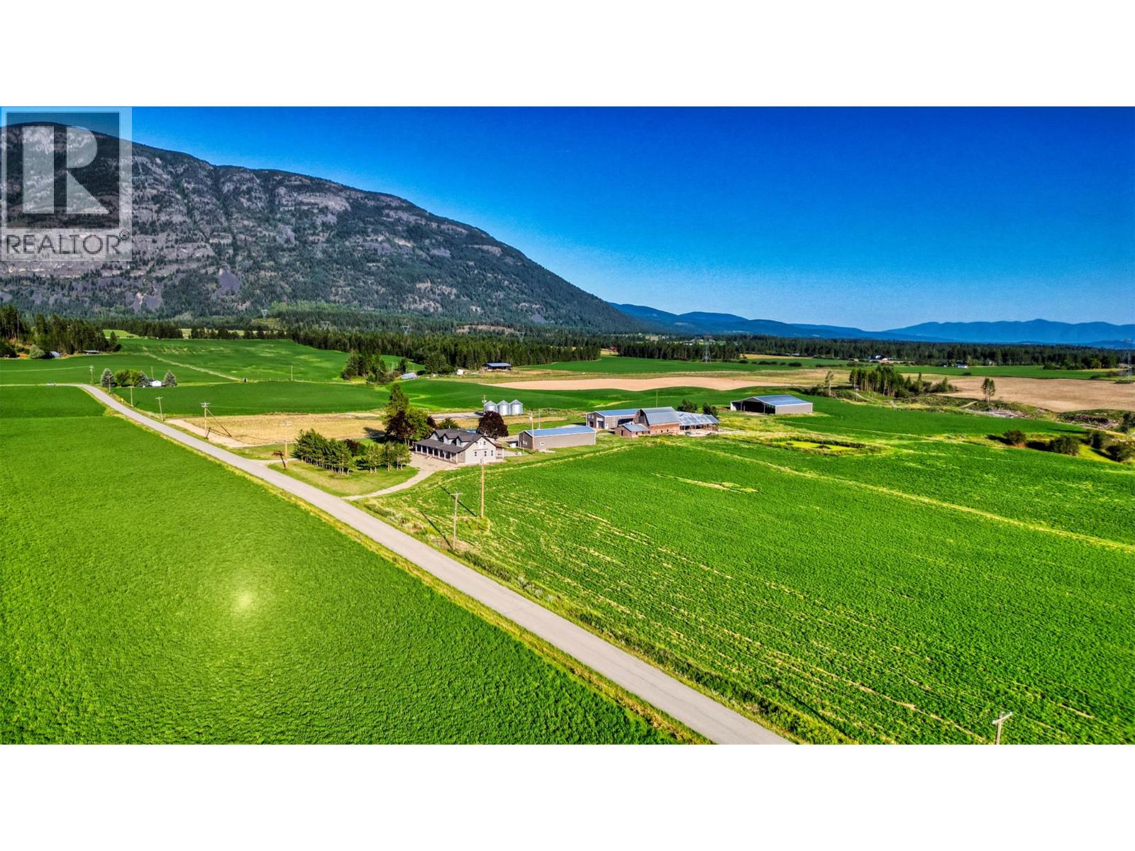 Exceptional 160-Acre Border Farm Oasis with Renovated Home in Creston! Sharply priced, this rare 160-acre farm, sharing the USA border near Thompson Mountain in Lister/Creston, BC, offers a unique opportunity. This property blends productive farmland with a luxurious residential retreat. Approximately 87 acres are cultivated: 27 acres of garlic and 60 acres of hay. Abundant water from the Kootenay River (a three inch line) irrigates all 160 acres, offering significant potential for new crops like cherries. Domestic water is supplied by the City of Lister; septic systems are in place. Key Features: Land: 160 acres with 87 acres cultivated (garlic 27, hay 60), ample irrigation, and room for expansion. Main Home: Fabulously renovated six bedroom, multi-bathroom farmhouse (1917 original, with a remodelled addition) with a private owner's area and inground pool. Extensive Outbuildings: Large pole barn, seven bay equipment shed with office, oversized garage/equipment storage with a one bedroom, one bathroom suite above (plus two bathrooms and laundry below for employees), Quonset, older barn, pole shed (metal roofs), three grain silos. Additional Living: Separate 3 bedroom, one bathroom manufactured home. Location & Lifestyle: Enjoy a sunny spot with impressive mountain and valley views. Approximately 30% of boundary of the property is fenced. Conveniently located: Creston Golf Club (five minutes), Thompson Mountain trails (hiking, biking), City of Creston (ten minutes). Canadian Rockies International Airport (near Cranbrook) is approximately one hour. The Rykerts/Porthill USA border crossing is just 5 kilometers away leading to Spokane, WA, and Sandpoint, ID. This versatile farm offers agricultural productivity and a high quality of life in a stunning border setting. Imagine! (id:59278)