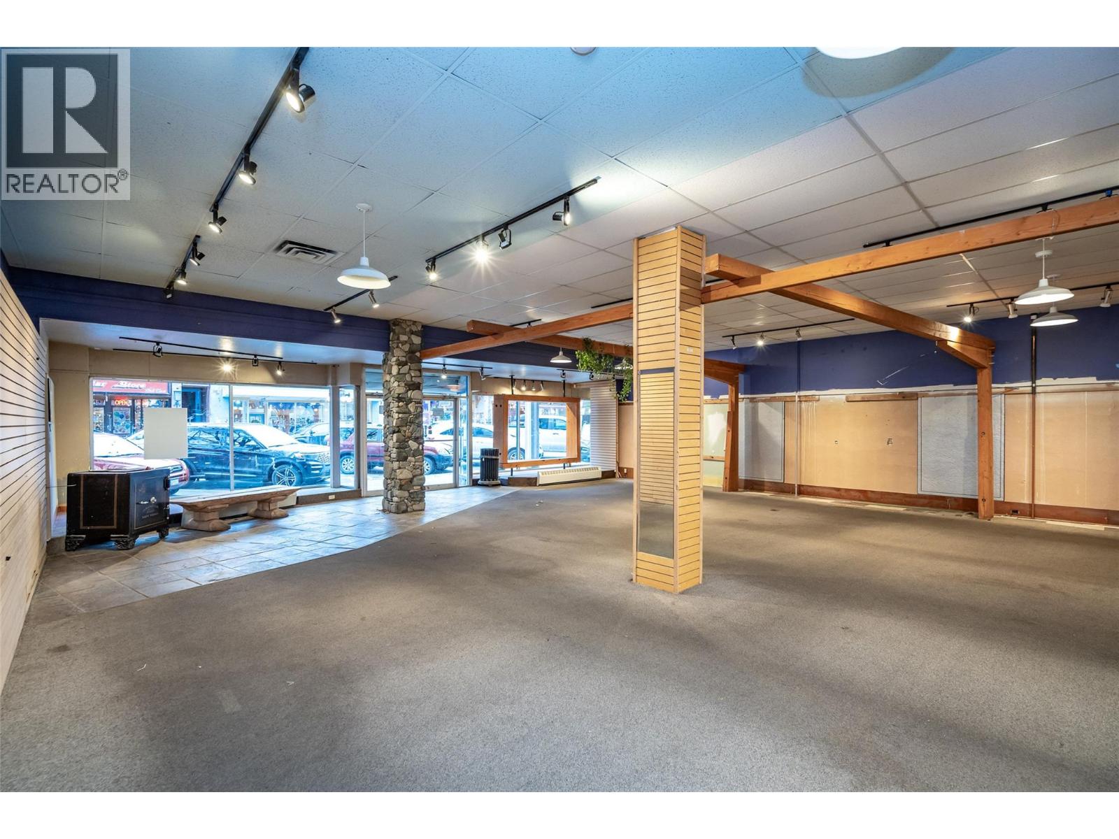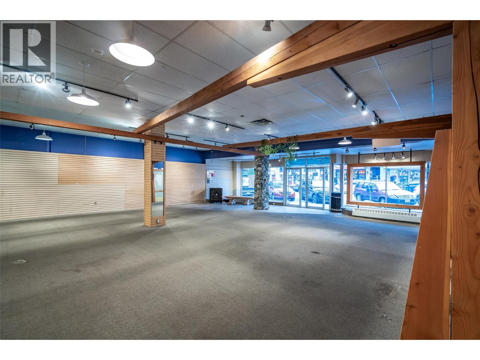 Available for immediate occupancy is the full main floor and basement of 639 Baker Street, located in Nelson, BC. Comprising a versatile +4,971 SF main floor plus a “bonus” 393 SF mezzanine and a +3,500 SF basement, the unit represents an exciting Baker Street leasing opportunity offering a prime space suitable for office, retail, restaurant or a multitude of other commercial uses (C1 - Core Commercial zoning). This exceptional property features a flexible and spacious open-concept layout with ~37 feet of premium Baker Street frontage featuring ~15-foot ceiling heights to truss, ~120 feet of depth, three phase power, separate utility metering, rear laneway loading, air conditioning, plumbing in place for washrooms on main floor and basement, and floor to ceiling windows offering high-impact retail visibility and exposure along Nelson’s most important shopping and entertainment street. This strategic location ensures maximum exposure, providing a steady stream of shoppers and clients. Immediately adjacent businesses include Pharmasave, The Oak Hotel, RE/MAX, and RHC Insurance. (id:59278)