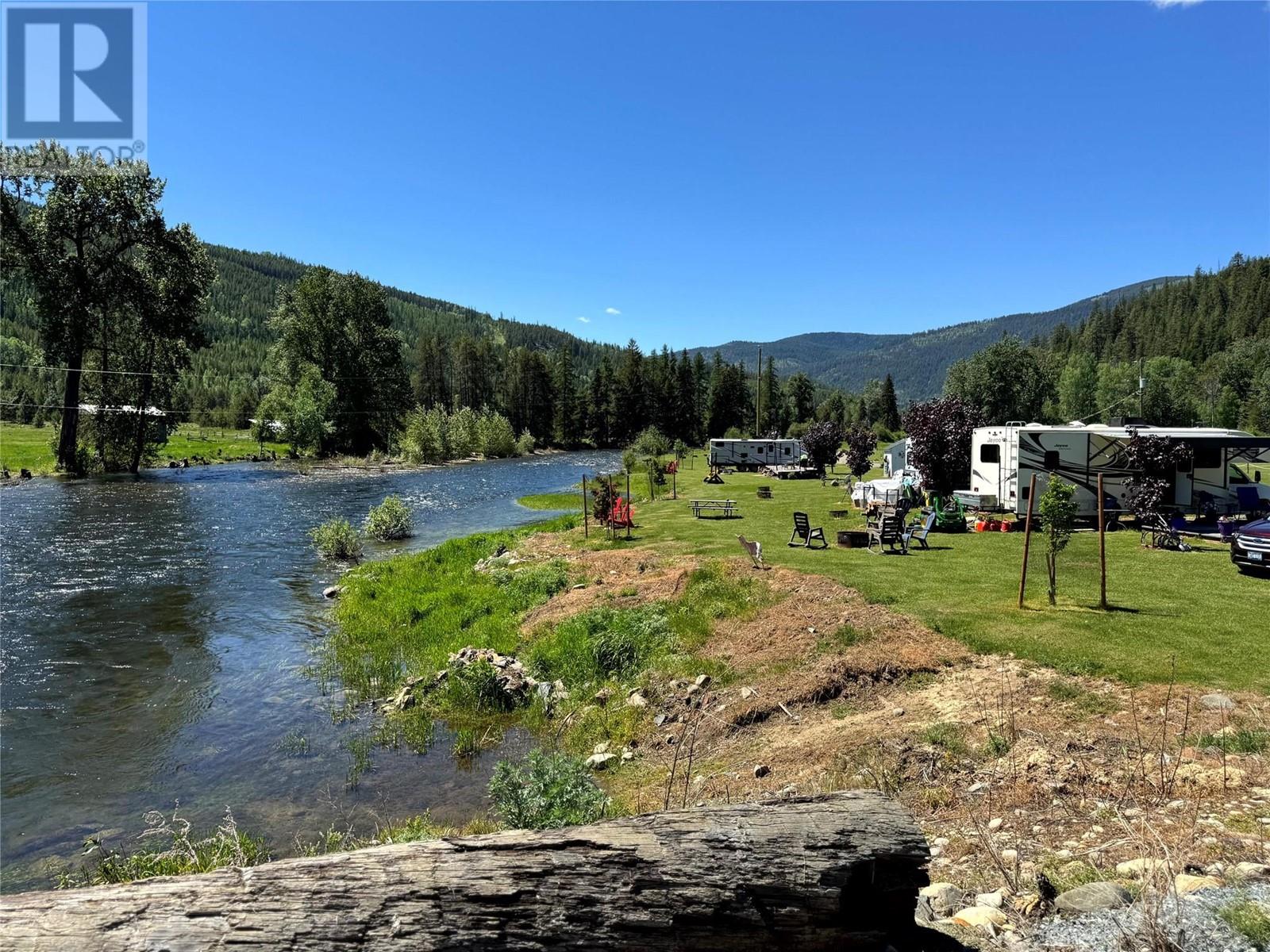 River’s Edge Ranch – 156 Acres on the Moyie River with No Zoning and RV Infrastructure Located just outside Yahk, BC in the heart of the Kootenays, this 156-acre property spans two separately titled parcels with frontage on the Moyie River. With no zoning and direct access from Highway 3/95, the land is highly usable and well-suited to a range of potential uses. The northern parcel is currently operating as a seasonal RV campground, featuring 7 full hook-up sites, 21 power/water sites, sani-dump, washroom and laundry building, playground, outdoor kitchen, and a covered timber-frame stage. Excellent highway visibility and a straightforward, functional layout support continued operation or expansion. A private highway-grade bridge crosses the Moyie River into the southern parcel, which includes open pasture, several older outbuildings, and an estimated 60 acres of merchantable timber. A 600-amp power service has been installed across the river, offering serious potential for future development. This is a rare opportunity to acquire large-scale, unzoned riverfront land in a prime location with existing infrastructure already in place. (id:59278)